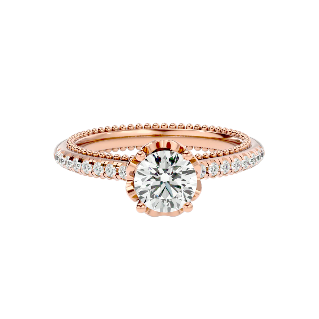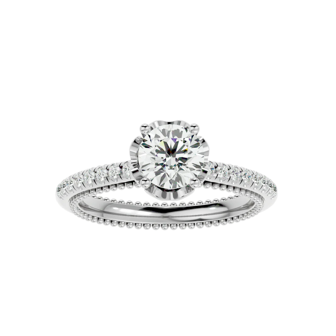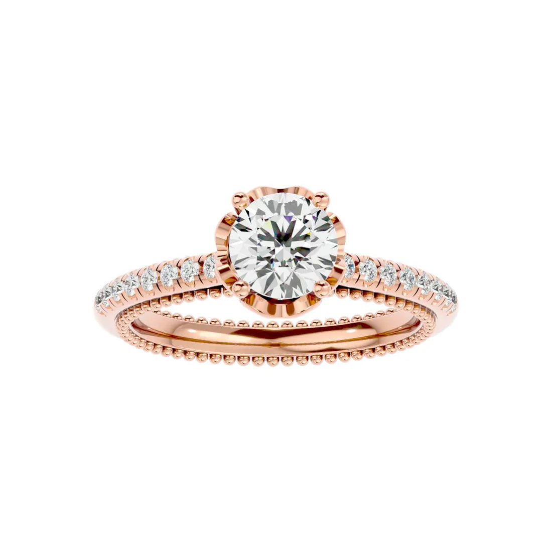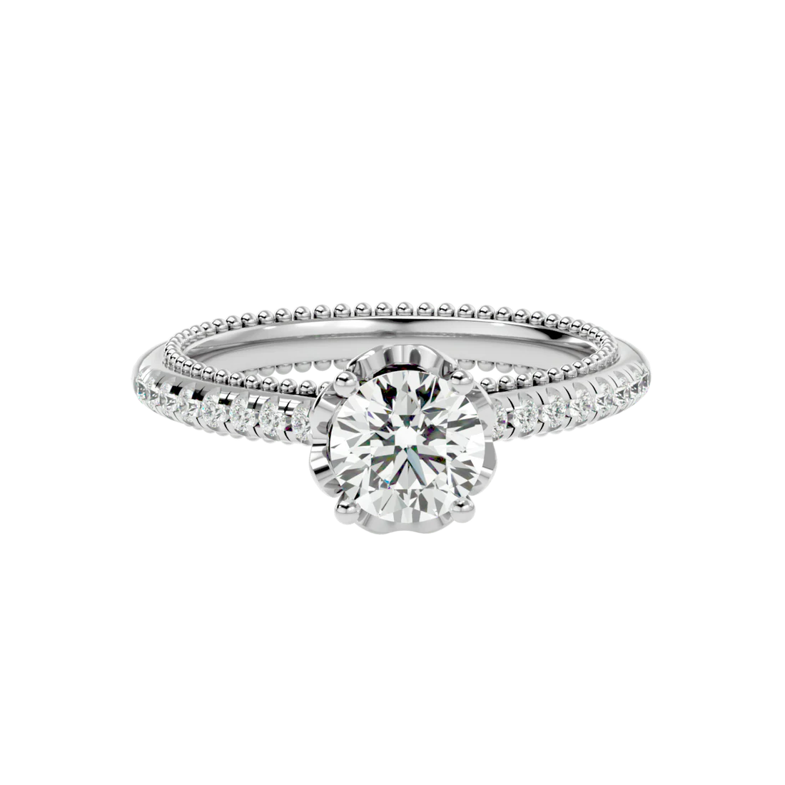 0.77 Carat Beaded Solitaire Diamond Ring with Pavé Band