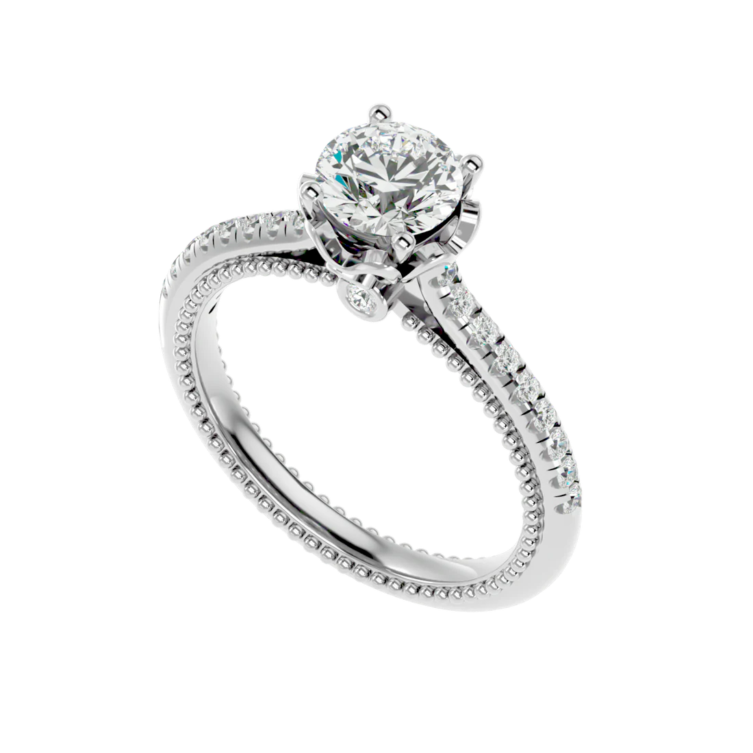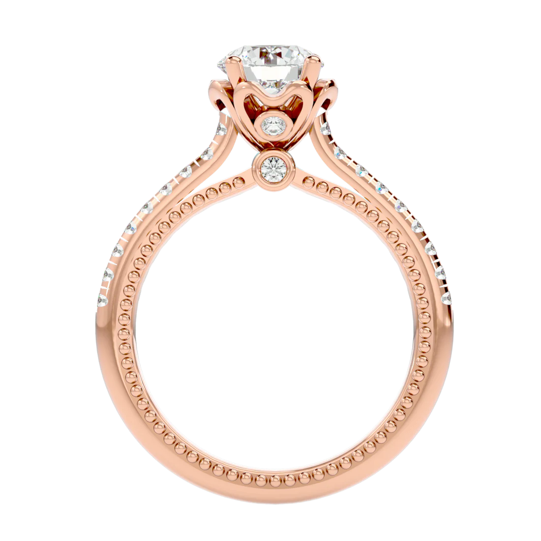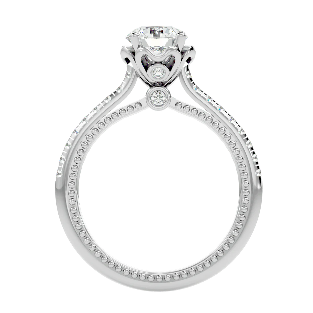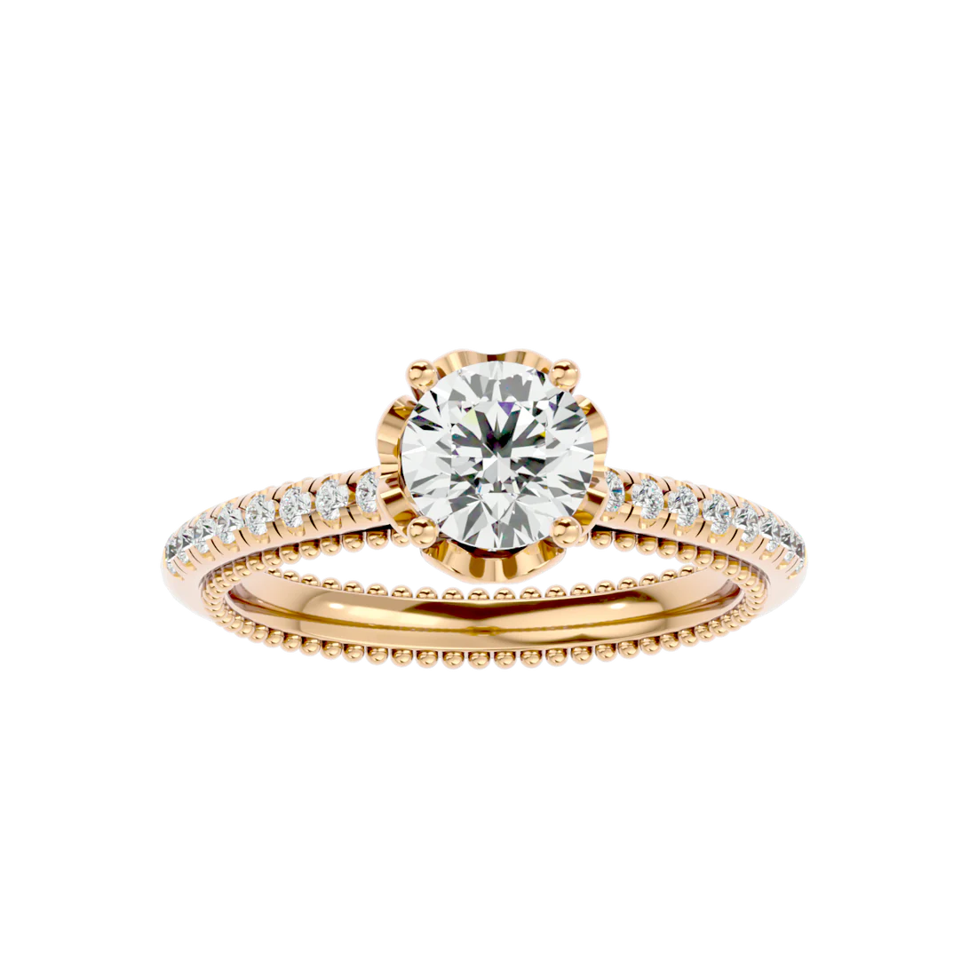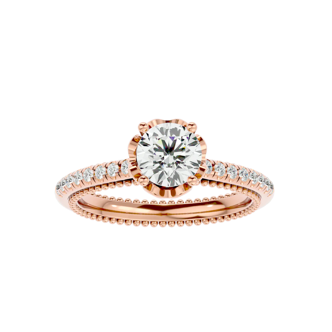 0.77 Carat Beaded Solitaire Diamond Ring with Pavé Band
