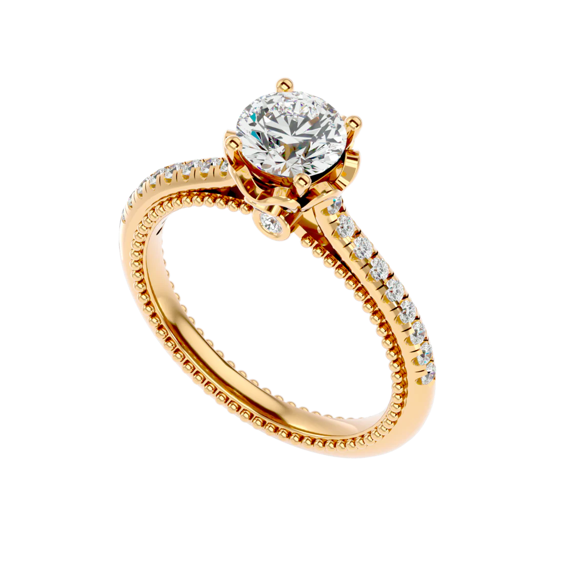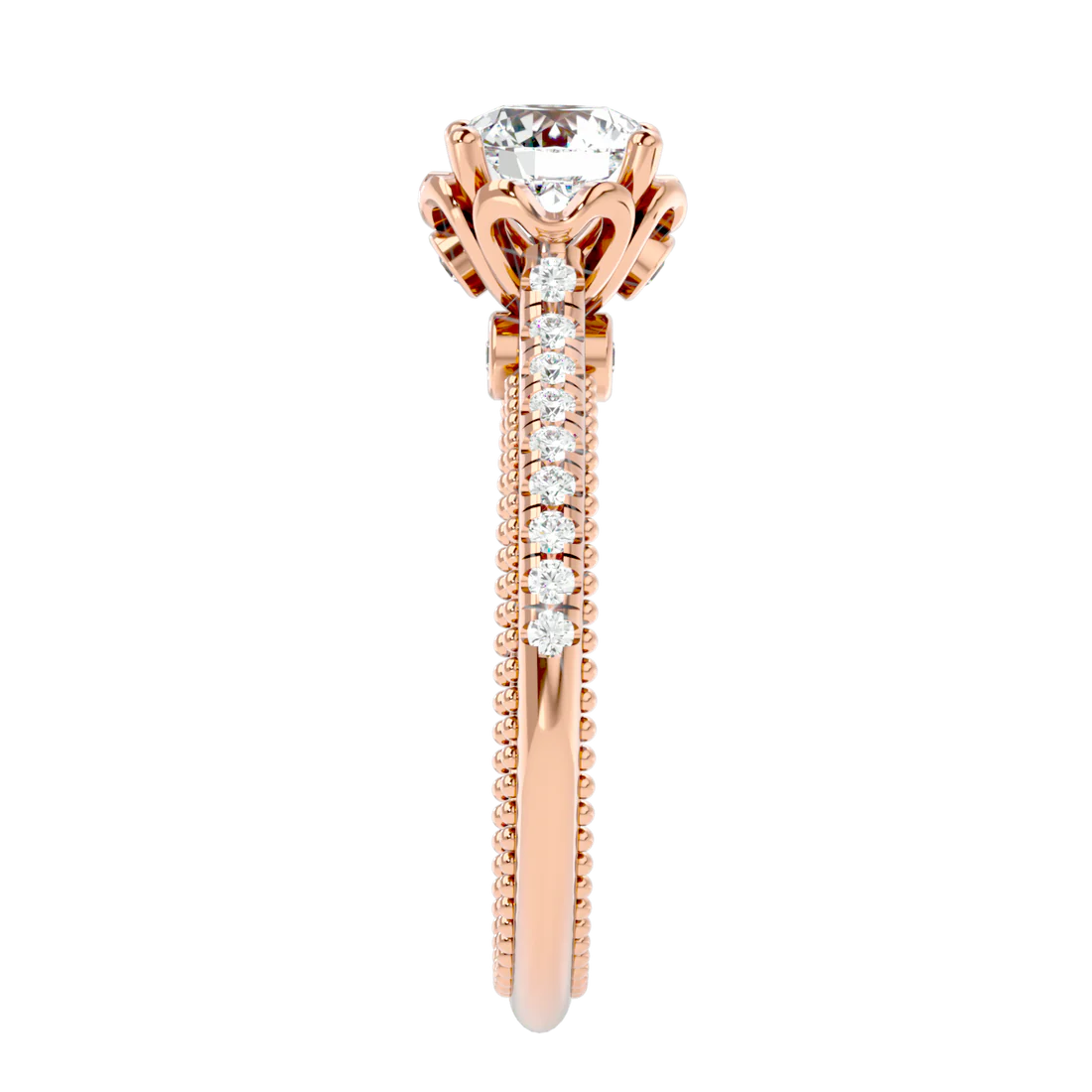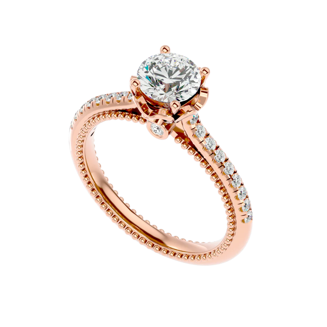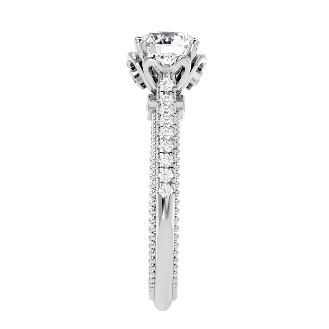 0.77 Carat Beaded Solitaire Diamond Ring with Pavé Band