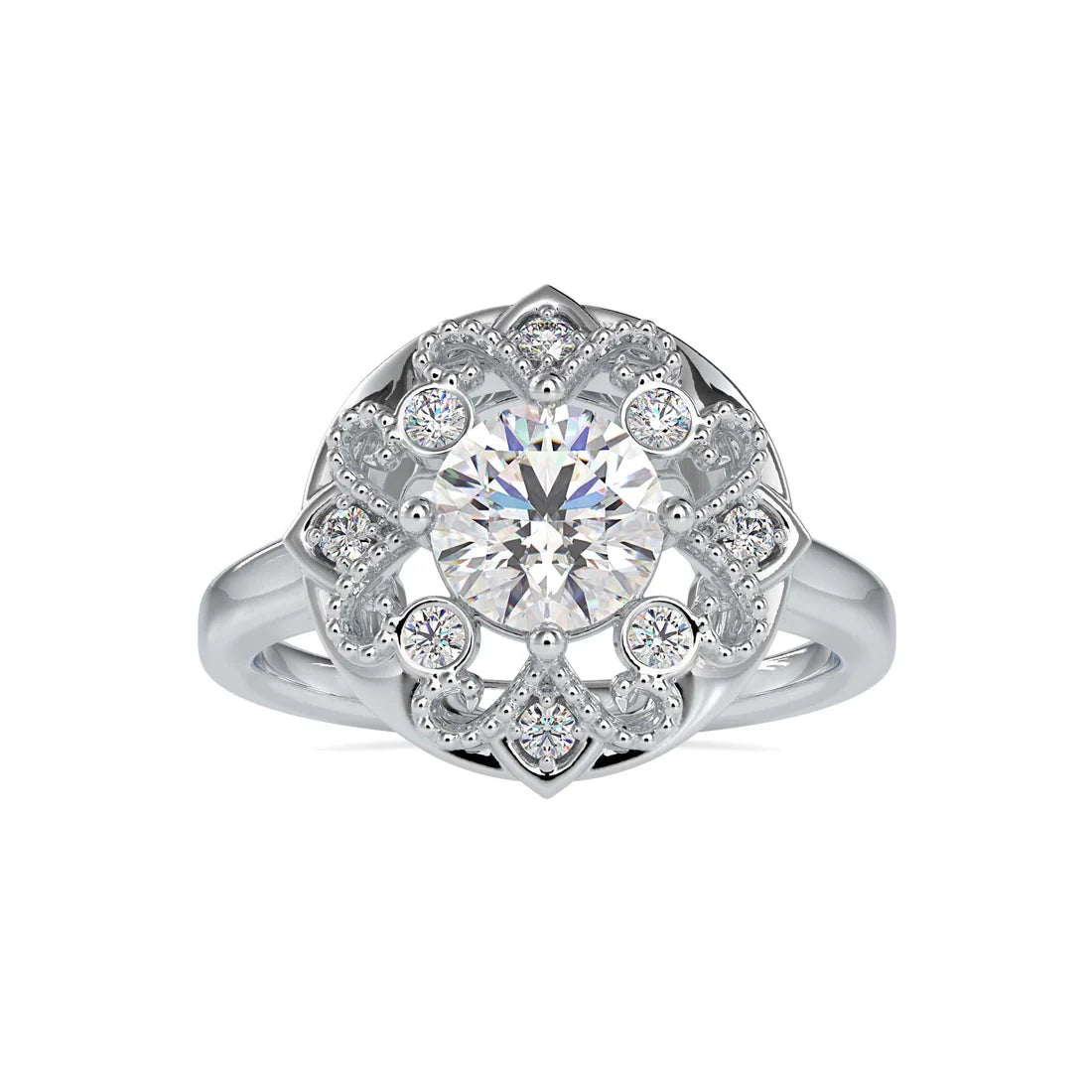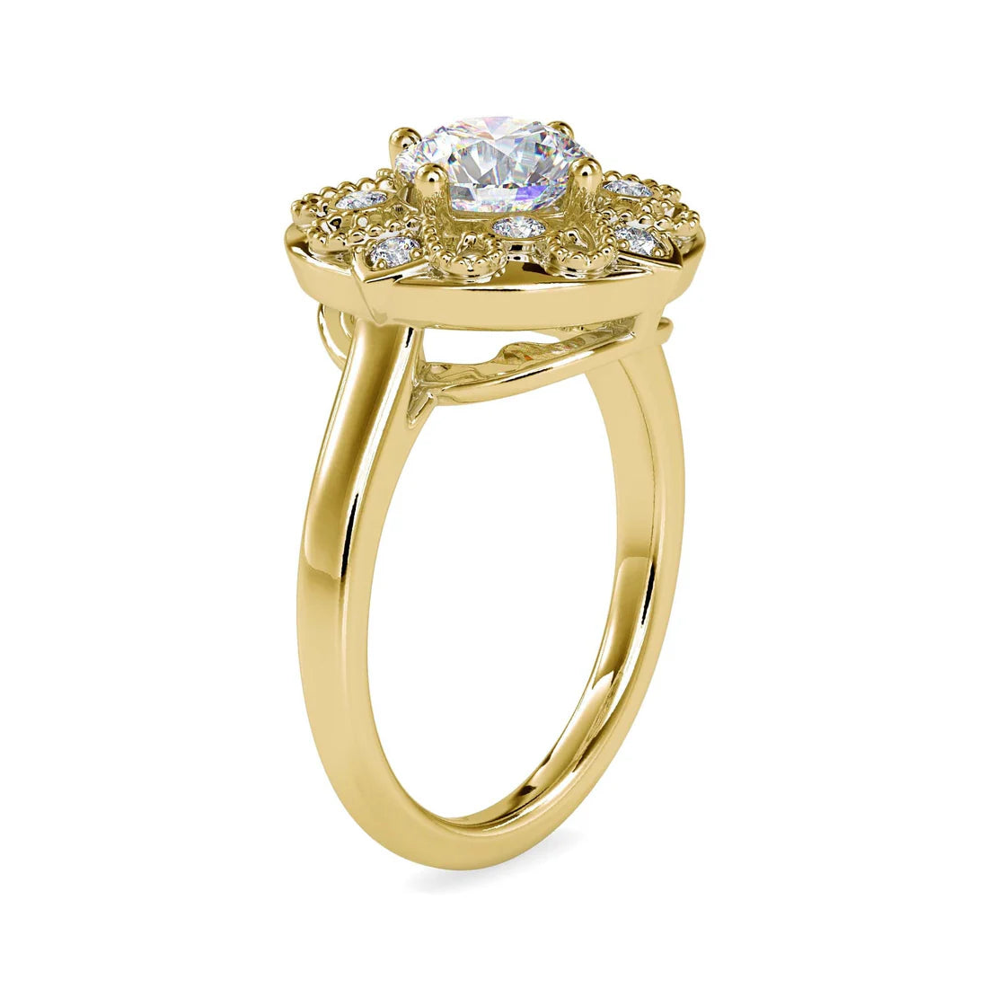 1.32 Carat Round-Cut Vintage Floral Halo Diamond Ring