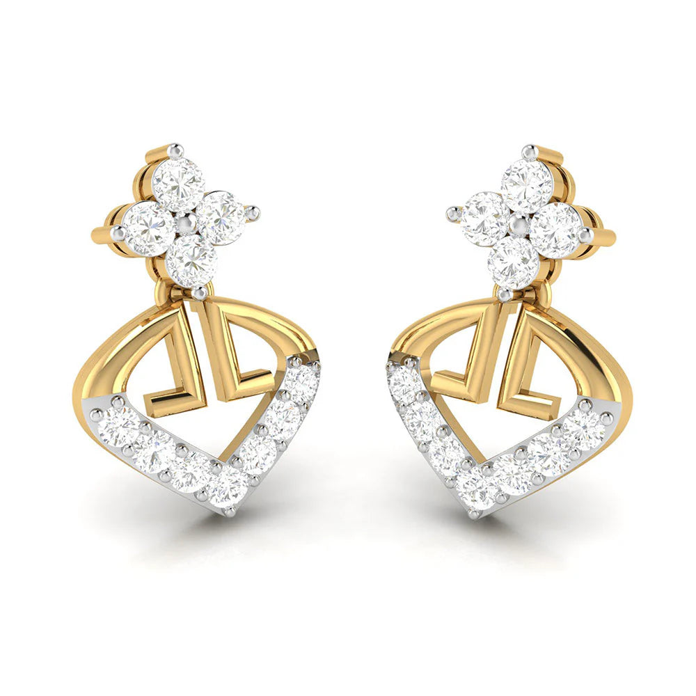 Floral Cluster & Heart-Shaped Diamond Earrings