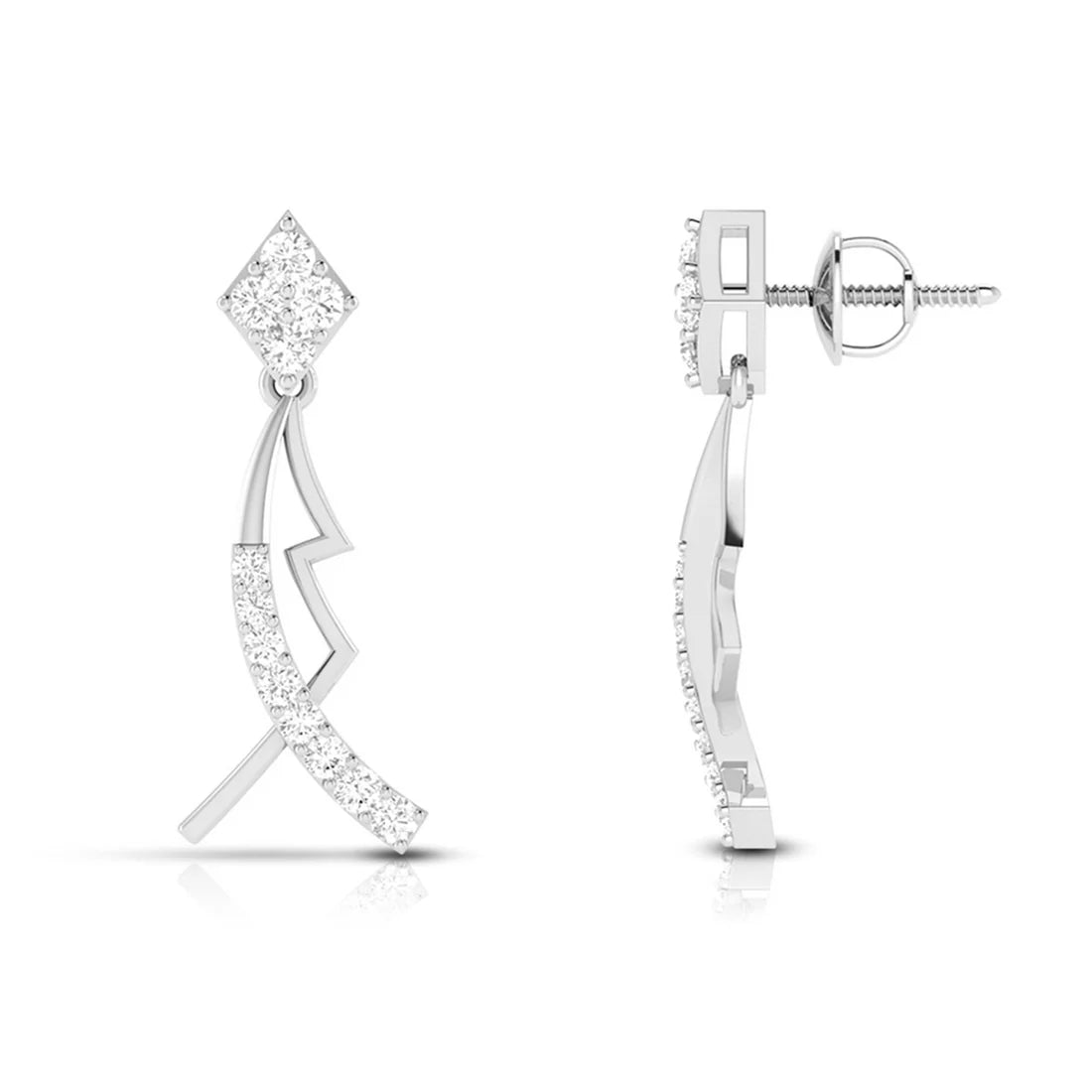 Geometric Kite-Shaped Diamond Dangling Earrings